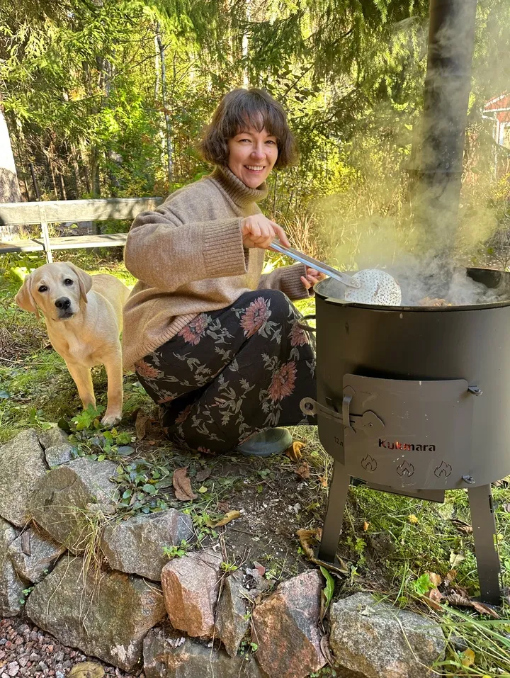Последние дни перед холодами провели на даче и порадовали себя лагманом, приготовленном в казане на  новом учаге Kukmara. Учаг очень удобен и безопасен, так как разжигание огня происходит внутри учага, а жар от огня и углей окутывает весь казан. Кроме того, учаг можно использовать также для жарки шашлыков. Казан хорош тем, что он легко моется, не царапается и вообще считается вечной посудой.  Ну и готовить можно как на открытом огне на улице, так и дома на плите. Полную версию моего фирменного рецепта смотрите в видео.